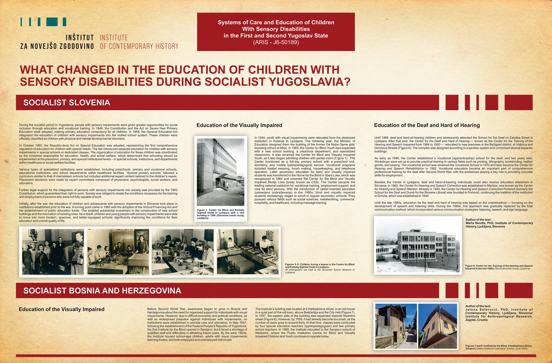 During the socialist period in Yugoslavia, people with sensory impairments were given greater opportunities for social inclusion through education and vocational training. In 1946, the Constitution and the Act on Seven-Year Primary Education were adopted, making primary education compulsory for all children. In 1958, the General Education Act integrated the education of children with sensory impairments into the unified school system. These children were officially classified as children with physical and mental developmental disorders.